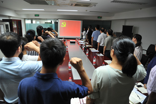 为开展好建党96周年纪念活动,加强党员教育,6月30日下午,中心党总支组织中心职工党员和入党申请人通过奏唱国歌、重温入党誓词、“七一献爱心” 捐款活动、学习微党课、奏国际歌、“合格党支部建设规范和合格党员行为规范”研讨等六项内容,开展了严肃规范的 “2017年七一主题党日活动”。