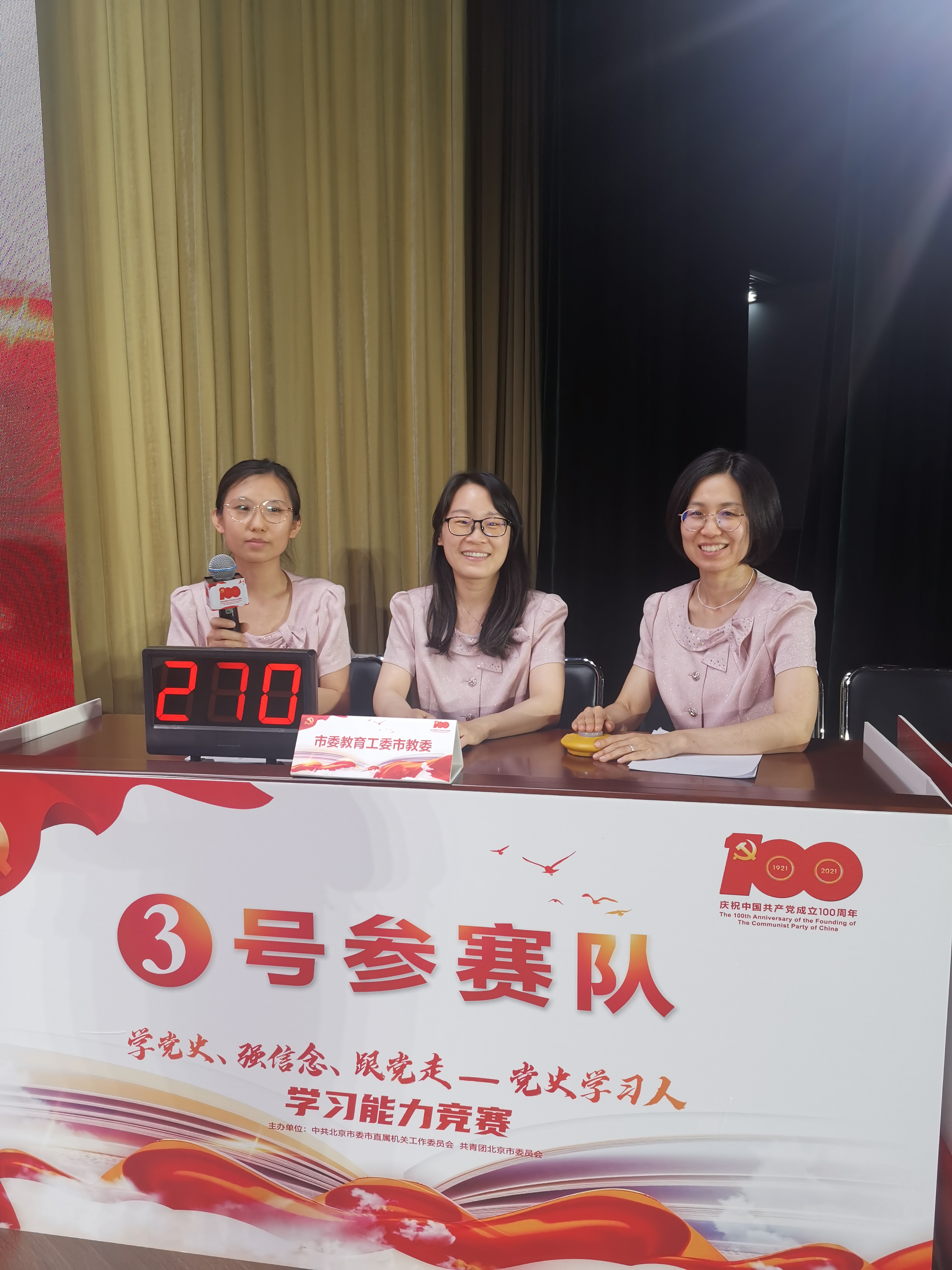 六月骄阳似火,赛场捷报频传。6月17日,北京市直机关工委、北京市团委举办北京市机关第五届青年技能大赛“学党史、强信念、跟党走——党史学习人”学习能力竞赛。 经过层层选拔,来自北京市学生活动管理中心的王鹏、冯晓虹、佟雪娜三名青年干部代表市委教育工委市教委(以下简称“两委”)机关团委参加竞赛并取得了亚军的好成绩,充分展现出两委机关系统青年干部积极、自信、进取的青春风采。
