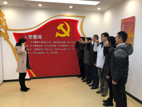 在社区党员活动室,党员同志们观看了福祥社区党组织纪实宣传片,更加直观地感受到“五心”社区党组织服务群众的件件实事、处处真情、幕幕实景。“五心”社区服务阵地深深打动了我们全体党员同志,大家在支部书记带领下,齐聚党旗前重温了入党誓词。