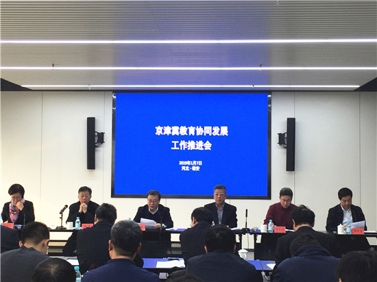 1月7日,京津冀教育部门在雄安新区召开教育协同发展工作推进会,总结2018年工作,研究推进2019年工作。北京市教委主任刘宇辉、副巡视员张永凯,天津市教委主任荆洪阳、副主任徐广宇,河北省教育厅厅长杨勇、副厅长韩俊兰,雄安新区管委会副主任傅首清,教育部发展规划司基管后勤处处长王长树出席会议,首都师范大学、天津师范大学、河北师范大学副校长,三省市教育部门相关职能处室、相关区市教育部门和雄安新区管委会分管负责同志等80余人参加会议。
