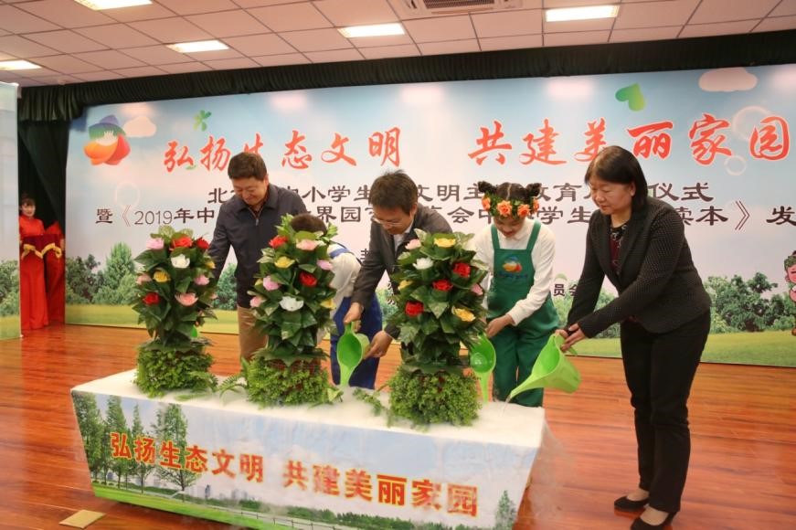 4月28日,2019年中国北京世界园艺博览会在延庆开幕。市教委牢牢把握世园会这一生态文明教育的重要契机,编印了《2019年中国北京世界园艺博览会中小学生知识读本》,发放给全市各中小学校,作为学校开展世园会主题教育活动的参考用书和生态文明教育的课程资源,并结合世园会,组织开展“弘扬生态文明 共建美丽家园”生态文明主题教育活动,指导各学校要结合社会大课堂、研究性学习、综合社会实践等,组织学生到世园会进行实地参观学习,丰富学生对生态文明的理解和感悟。