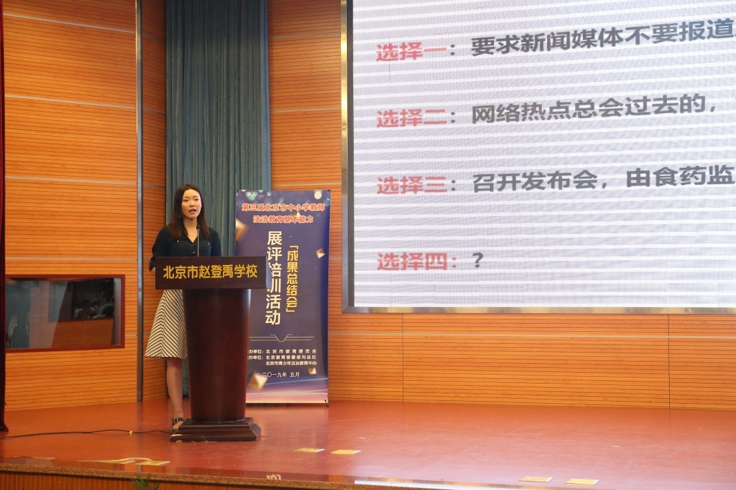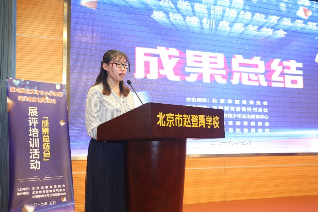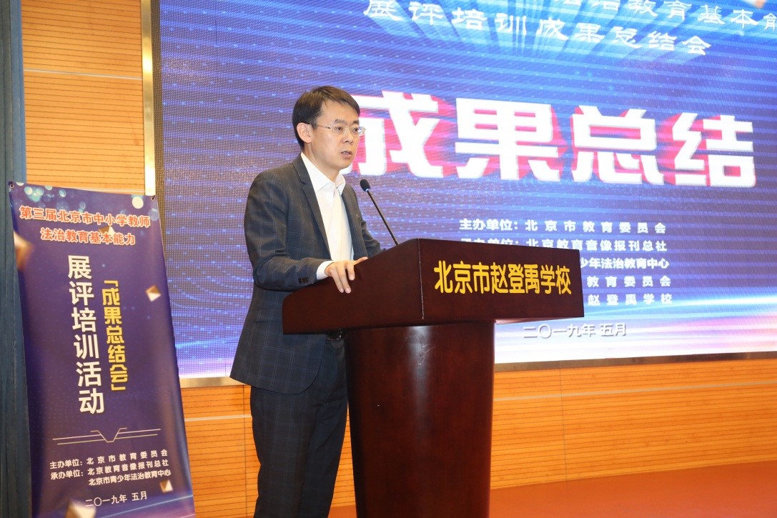 5月14日,第三届北京市中小学教师法治教育基本能力展评培训成果总结现场会在北京赵登禹学校举行。教育部政策法规司巡视员王家勤,北京教育音像报刊总社党委书记、社长李开发及市教委、市司法局等单位领导出席。各区教委相关工作负责人和全市中小学教师代表共200余人参加活动。