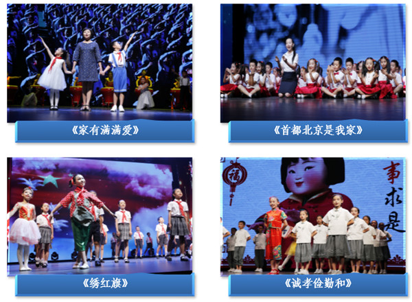 本次展演活动共分为“不忘初心”、“诗礼传家”、“丹心为国”、“筑梦中华”、“继往开来”五个部分,来自全市16个区及燕山地区共20件童谣传唱作品先后登台进行展示。同学们用朗诵、伴唱、伴舞、京剧、情景剧等多种童谣表现形式,讲述身边的美好生活,赞美伟大祖国的巨大发展变化,表达自己的爱国之心、强国之愿、报国之志。展演活动在演员和观众的大合唱《我和我的祖国》中落下帷幕。