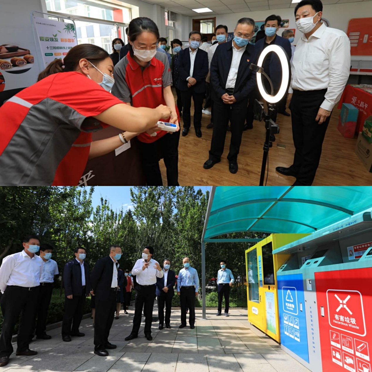 图3 电商系学生京东校企合作平台助农直播、带货樱桃, 考察智能垃圾分类系统