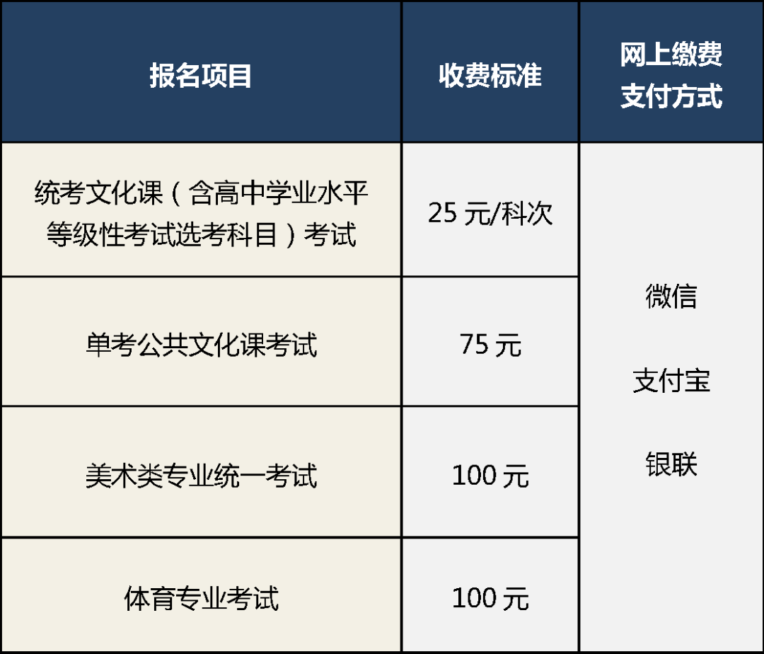 报名缴费标准及网上缴费支付方式