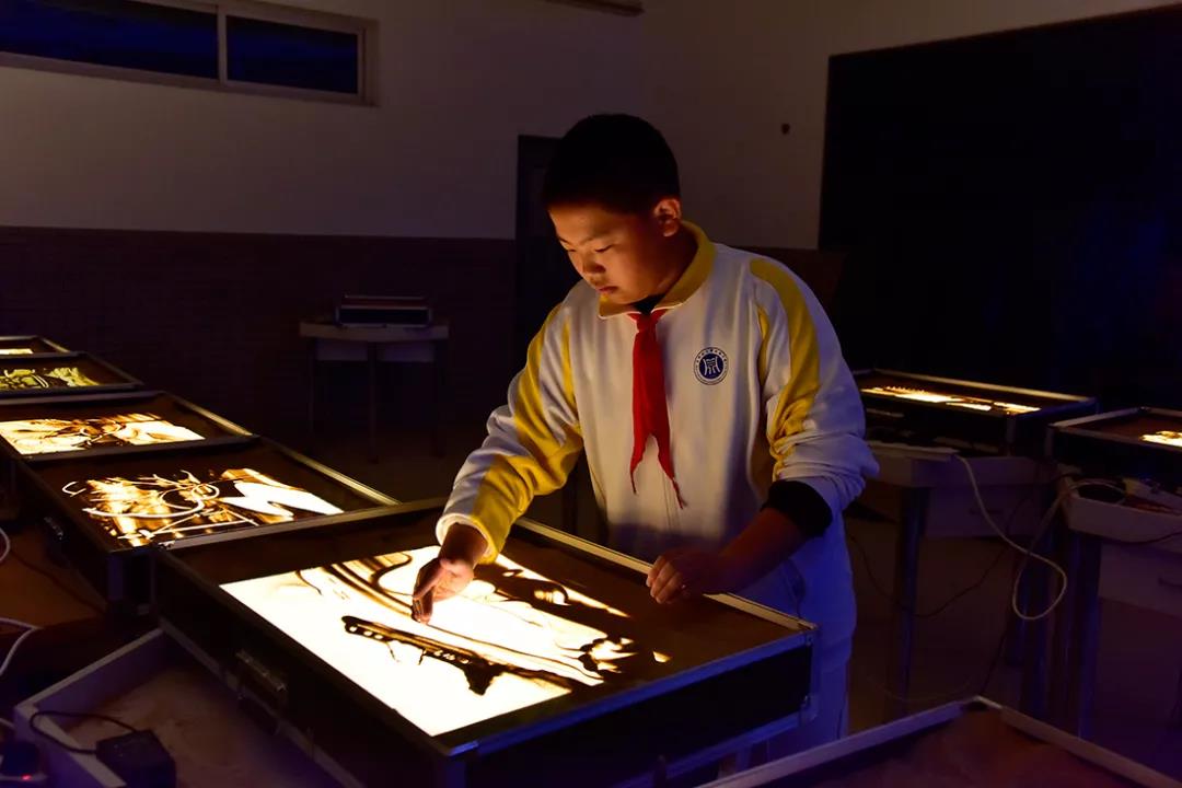 ▲ 北京科技大学附属中学的同学在课后服务时间学习沙画