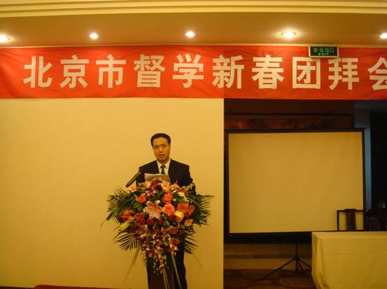 2月10日,市政府教育督导室在北京市宣武商务酒店召开北京市兼职督学新春慰问会。市委教育工委副书记、市政府教育督导室主任线联平作教育督导工作报告,市政府教育督导室副主任刘莉、李壑、关国珍,综合督导处、基教督导处、职成督导处的全体干部,市政府兼职督学共计80多人参加了会议。会议由市政府教育督导室副主任刘莉主持。