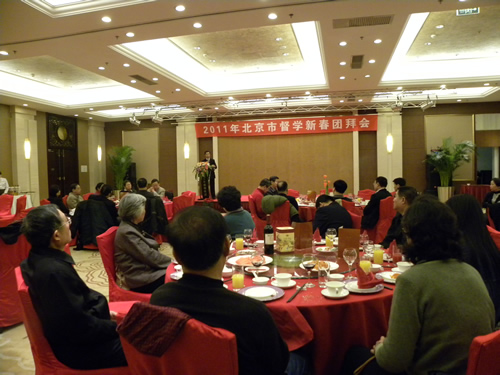 1月25日,北京市政府教育督导室在北工大建国饭店召开2011年北京市督学新春团拜会。市委教育工委副书记、市政府教育督导室主任线联平做教育督导工作报告,市政府教育督导室副主任刘莉、李壑、关国珍,市政府教育督导室综合处、一处、二处的全体干部,以及市政府专兼职督学百余人参加了会议。会议由市政府教育督导室副主任刘莉主持。