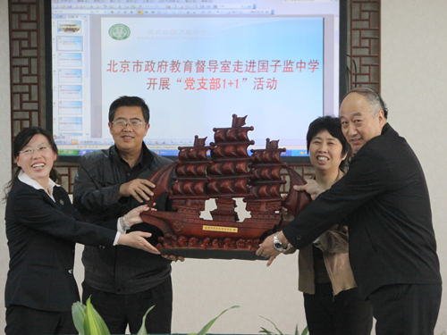 国子监中学是东城区一所普通公立初中校,自2009年督导室党支部与国子监中学党支部结成“对子”之后,督导室党支部多次组织党员到学校学习交流,通过共上一次党课,共度教师节,帮助学校解决硬件建设困难,慰问教师等活动,与学校党支部结下了深厚友谊。