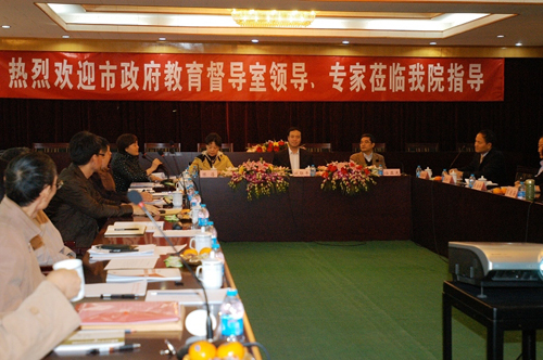 按照综合督导工作程序,市综合督导组首先听取了学院李雪辉院长做的自评报告。李院长根据综合督导指标要求,对学校各方面工作进行了全面总结,对自评结果进行了整体分析,总结了学院办学的特色与优势、分析了学院目前工作中存在的问题,制定了改进措施。