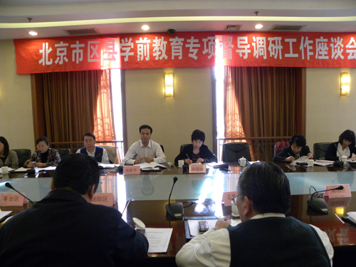 10月25日至26日,北京市政府教育督导室连续召开三场北京市区县学前教育专项督导调研工作座谈会,分别邀请各区县的分管教育工作区县长和教委分管学前教育工作的领导、教育督导室主任和幼儿园园长、教委相关科室负责人,了解各区县学前教育发展的状况和困难,征询不同层面对学前教育专项督导工作的意见和建议。