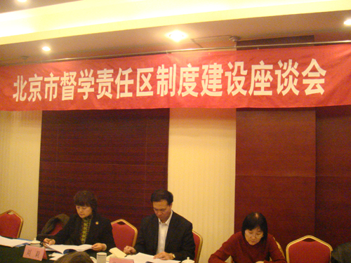 2012年3月2日,北京市人民政府教育督导室组织召开了督学责任区制度建设工作座谈会,北京市教育工委副书记、北京市人民政府教育督导室主任线联平、教育部教育督导团办公室副巡视员程锦慧、北京市人民政府教育督导室副主任刘莉出席了座谈会,参加会议的还有东城、西城、朝阳、海淀和顺义五个试点区的人民政府教育督导室相关负责同志以及督学责任区研究小组的全体成员。北京市人民政府教育督导室副主任刘莉主持了会议。