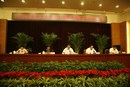 2012年6月12日,北京市义务教育均衡发展督导评估工作启动会召开。会议的主要任务是:根据教育部和北京市区(县)域义务教育均衡发展督导评估办法文件精神,就如何做好国家对北京市义务教育均衡发展督导评估验收工作,进行动员和部署,并就如何做好迎检工作进行具体培训。市教育工委副书记、市政府教育督导室主任线联平,市教委副主任罗洁分别作了重要讲话,市政府教育督导室副主任刘莉、关国珍出席会议。会议由市政府教育督导室副主任李壑主持。