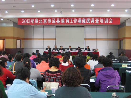10月26日,根据工作安排, 2012年度北京市区县教育工作满意度入户调查动员培训会召开,标志着调查工作的正式启动。市政府教育督导室副主任刘莉、北京教育科学研究院副院长方中雄、市统计局总统计师侯小维等领导出席并讲话。市政府教育督导室综合处、北京教育科学研究院基础教育科学研究所、市统计信息咨询中心等单位有关人员和300余名调查员参加了培训会。