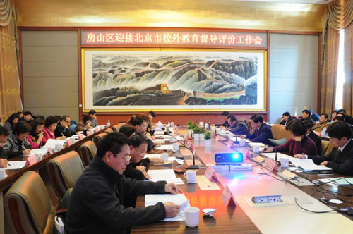 房山区教委主任郭志族作了题为《因地制宜,精心构建校外教育房山模式;结合实际,努力打造校外教育活动品牌》的工作汇报。郭志族指出,在广泛深入开展校外教育工作的实践中,逐步积累了适合房山实际的一些有效做法,创建了“房山模式”:一是创造性启动了校外教育活动站建设,提高了学生的参与率,促进了校外教育与学校教育教学的有机结合;二是打造了具有房山特色的“彩虹桥文化节”品牌活动,真正为郊区孩子提供了参与校外活动的平台,提升了校外教育品质;三是构建社会大课堂“3334”房山模式,拓展了学生实践空间,学生实践活动与学科课程得以有效衔接;四是营造了“校校有项目、班班有活动、人人都参与”的中小学科技、艺术和体育教育氛围,提升了科技、艺术和体育教育水平。