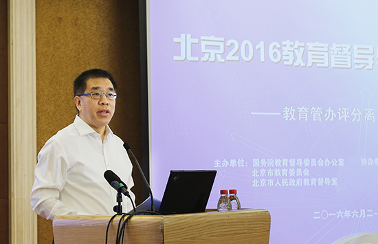 “管办评分离”是当前我国教育领域综合改革的一项重要内容,也是最近一段时间的热词。如何推进管办评分离,如何落实管办评分离,如何对其进行督导评价成为社会各界关注的焦点话题。6月2日、3日,由国务院教育督导委员会办公室、北京市教育委员会、北京市人民政府教育督导室联合举办的北京2016 教育督导与评价研讨会上,来自全国31个省市自治区的200余位专家、学者、官员以及督导工作者,围绕“教育管办评分离与督导评价”这一主题,进行深度研讨和交流。