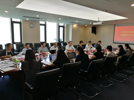 会上,学校督导处处长龙梅代表《规程》编制项目组,汇报了编制工作的总体情况。中小学校《规程》编制项目组、职业院校《规程》编制项目组、高等学校《规程》编制项目组三个子项目组,分别汇报了《规程》初稿框架及主要内容,并提出了目前编制工作面临的困惑与难题。顾问组专家结合各级各类学校特点,针对《规程》初稿的结构、内容等提出了意见建议,围绕“学校督导规程的核心内涵”、“督学与评估监测职能的内涵界定”、“督学队伍选配”、“督导结果使用”等相关问题给予了具体指导。