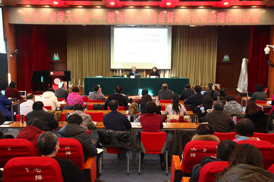 2016年12月29日上午,2016年北京市督学大讲堂第四讲在北京教育学院举行。国家督学、上海市人民政府教育督导室原主任杨国顺作了题为“教育现代化综合督政与教育治理体系建设”的专题讲座。市区两级专兼职督学共计300余人参加了报告会。报告会由市政府教育督导室副主任刘莉主持。