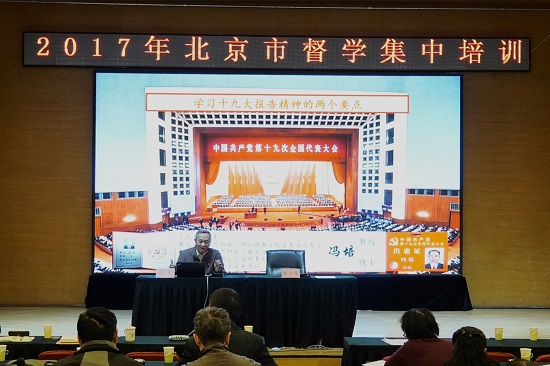 为进一步学习宣传贯彻党的十九大精神,准确把握新时期深化教育综合改革和教育督导改革的形势任务要求,切实提升督学履职能力,12月6日至8日,市政府教育督导室组织开展2017年北京市督学集中培训。此次培训是第十届市级督学聘任后首次集中培训。培训对象包括市政府特约教育督导员、市区级专兼职督学及督导室人员共计200余人。
