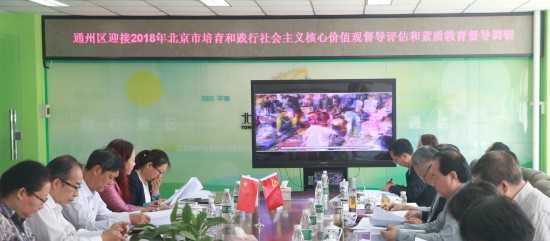 为贯彻落实国家和北京市相关文件精神,持续推动全市中小学校培育和践行社会主义核心价值观工作深入开展,实施与发展素质教育,9月19日-28日,市委教工委副书记、市政府教育督导室主任唐立军,市政府教育督导室副主任冯义国带队,“两委一室”相关处室、部门和市级督学组成督导评估组,依据《北京市中小学校培育和践行社会主义核心价值观督导评估方案》,对东城区、门头沟区、房山区、通州区、大兴区、怀柔区等6个区进行了培育和践行社会主义核心价值观实地督导评估,同时进行了素质教育督导调研。
