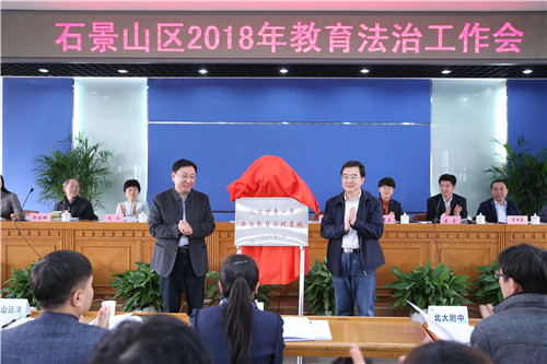 随后,李奕同志、郝显军同志为石景山区青少年法治教育实践基地揭牌。