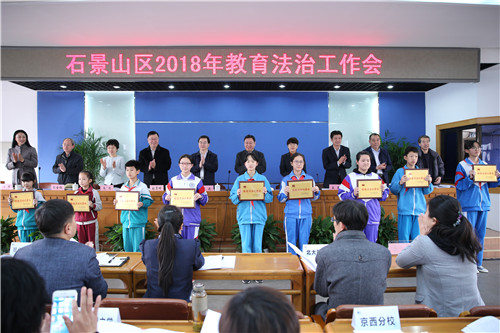 北京市京源学校、北大附小石景山学校、石景山区业余大学围绕依法治教等工作做了交流发言。