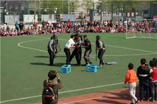三、实战演练,筑牢校园安全防线。为强化“国家安全人人有责”,“校园安全人人有责”的安全观念,通州区教师研修中心实验学校开展了反恐防暴实战演练;甘棠中心幼儿园以“坏人来了,我们该怎么办”向幼儿讲解了防范应对措施;通州区梨园镇新城嘉园中心幼儿园就春季防火开展了消防逃生演练。