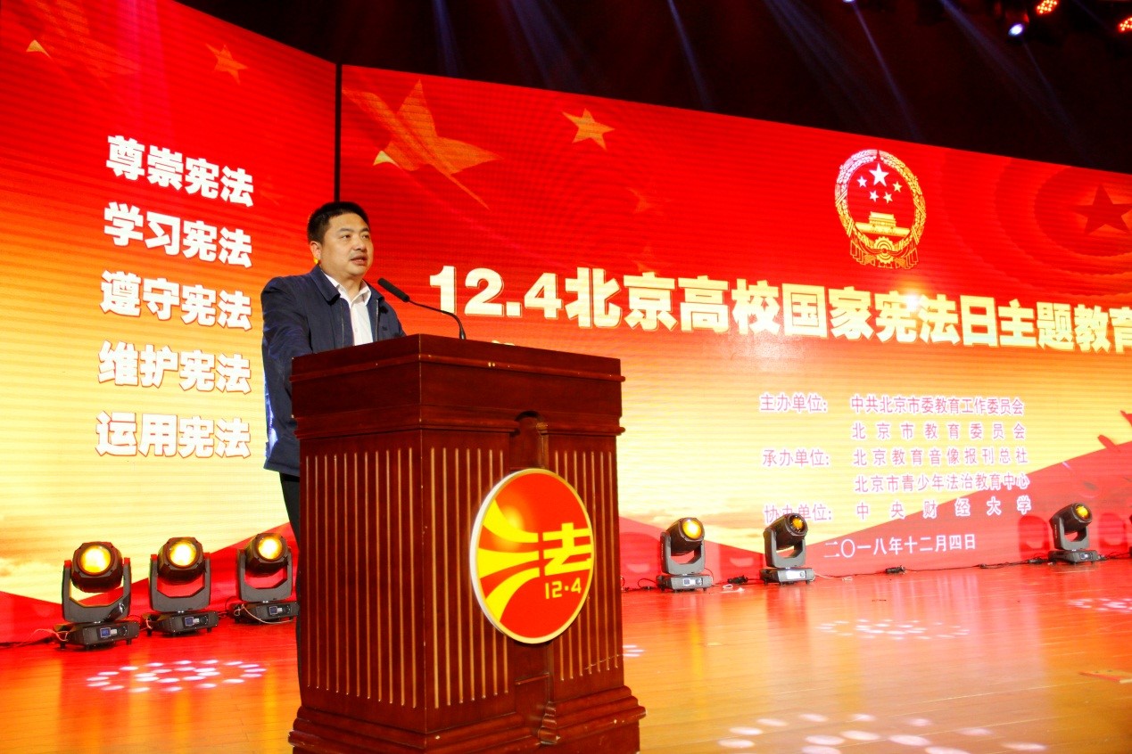 12月4日,北京高校国家宪法日主题教育活动在中央财经大学举行。教育部政策法规司、市委教工委、市司法局、团市委、北京教育音像报刊总社、各高校主管法治工作的负责人及师生共500余人参加了活动。