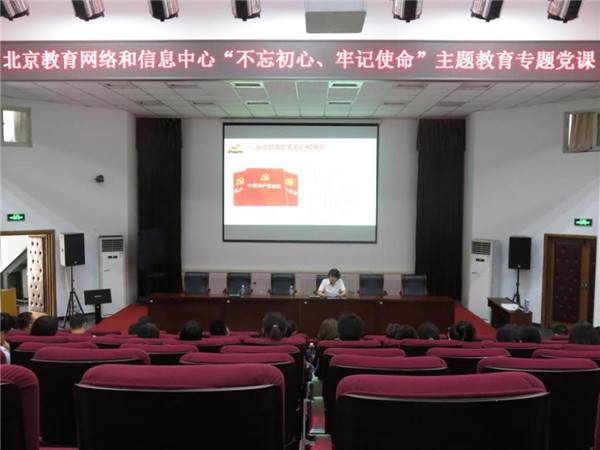 7月11日下午,北京教育网络和信息中心党总支(以下简称“信息中心”)组织开展“不忘初心、牢记使命”主题教育专题党课,党总支书记岳江红同志以“以坚定的理想信念坚守初心使命,努力做好新时代答卷人”为题,为信息中心全体党员干部讲授了党课。