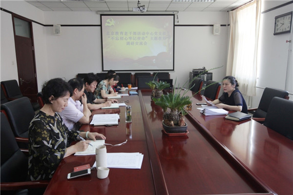 按照两委机关“不忘初心、牢记使命”主题教育工作部署和安排,北京教育老干部活动中心针对老同志文化养老需求开展调研。7月8日上午,召开调研工作交流会,调研组成员(中层干部和支部委员)参会,支部书记张妍同志主持。