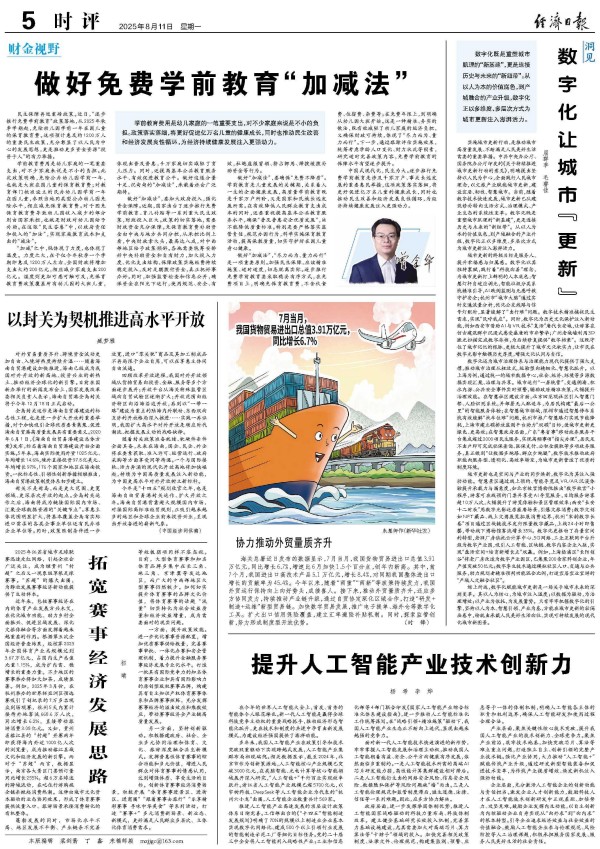“加减”之中,既体现了力度,也体现了温度。力度之大,在于仅今年秋季一个学期即惠及1200万人左右,全国财政将增加支出大约200亿元,相应减少家庭支出200亿元。温度则更加可感可触可及,免保育教育费政策覆盖所有幼儿园的大班儿童,体现出普及普惠,千万家庭切实减轻了育儿压力。同时,还提高基本公共教育服务水平、有效促进教育公平。做好这道分量十足、沉甸甸的“加减法”,承载着社会广泛期待。