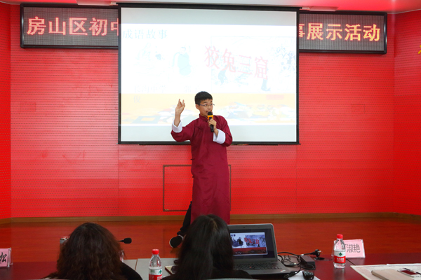 5月11日,房山区语委、区教委、区教师进修学校在二职业高联合举办了“房山区初中学生讲中华成语故事展示活动”。区教师进修学校语文教研员张学艳、马小松、邓长生三位老师担任评委。