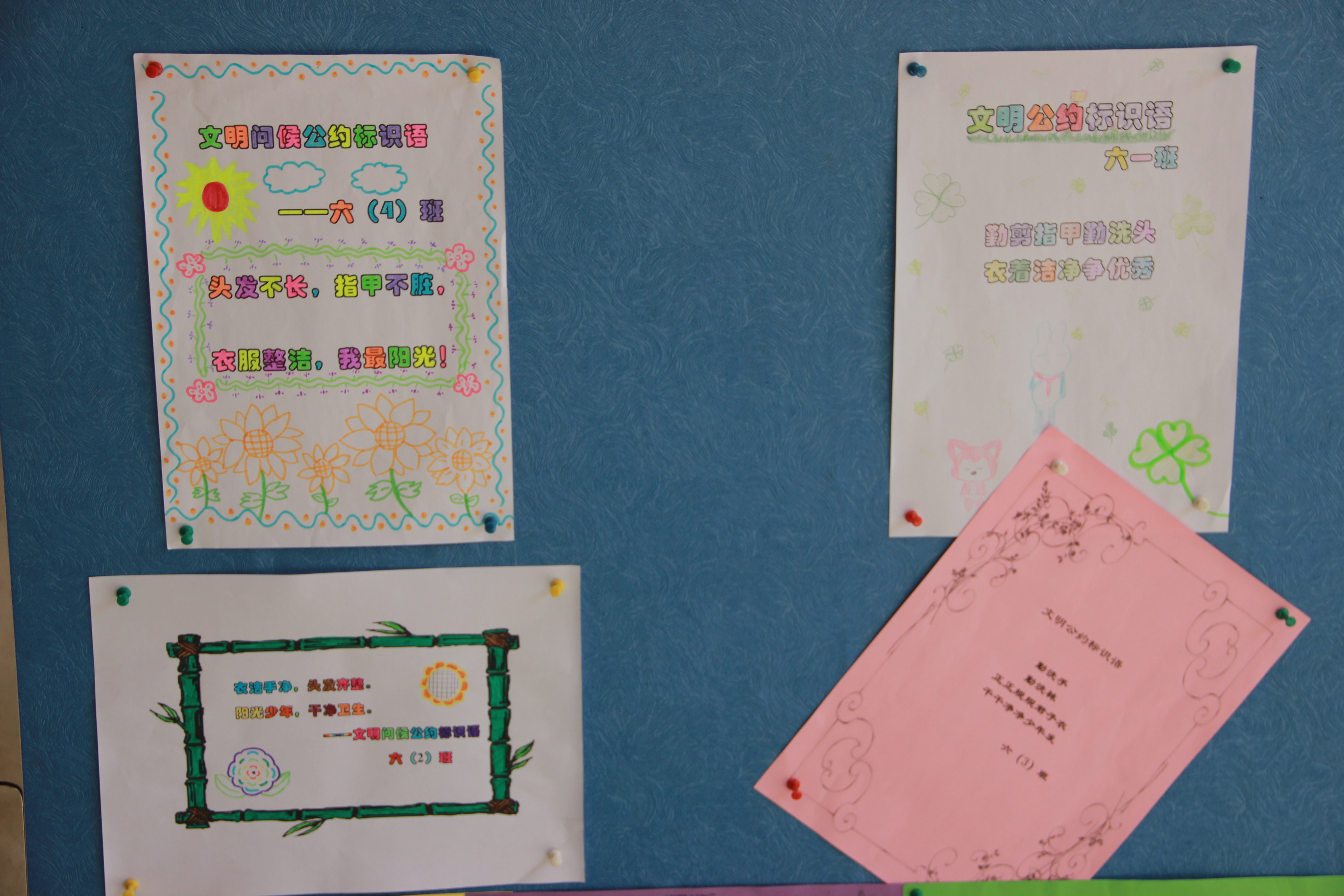 2014年5月,为了更深入开展“文明礼仪”教育活动,新发地小学启动“文明标识语”大征集活动。第一期征集活动中,各班级(中队)通过学习“文明公约”中的第一句“讲究卫生,礼貌问候”的具体细则,利用队课时间讨论具体实施方法,同时,师生一起制定针对于此句“文明公约”的“文明标识语”。最后,在新发地小学少先队大队的组织下,全校师生对来自28个班级的“文明标识语”进行阅读和学习。最终,全校师生对这28句自创的“文明标识语”进行投票选举,选出大家公认的5句标识语。将推选出的标识语进一步推广,为指导学生的言行服务。