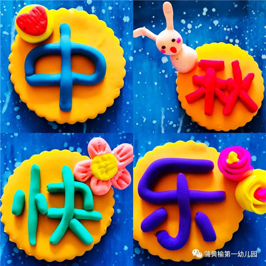 看,中班的小朋友也来体验了一把用超轻黏土做月饼。各异的外形,用心的设计,加上甜蜜的“糖霜”。孩子们将制作好的超轻黏土月饼带到社区中,把祝福与温暖传递给他人。