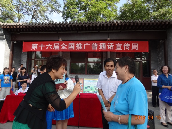 2013年9月15日上午9点30分至11点,门头沟区语言文字工作委员会办公室,在门头沟区葡山公园主办了主题为“推广普通话 共筑中国梦”的宣传活动。