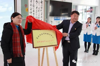 在今天这个喜庆的日子里,还有一个好消息要告诉大家,我校成为了中国书法家协会密云书法考级培训中心基地校,王少波校长和中书协密云书法考级培训中心主任刘冰花老师共同揭牌。