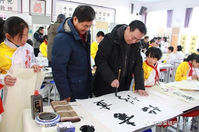 同学们最为期待的时刻终于了,各位书画家与孩子们一起挥毫泼墨,尽展书画无穷魅力。各位领导和书画家们或驻足在学生跟前,为学生的精彩表现频频点赞,或拿起孩子手中的笔悉心指导。孩子们完成作品后,纷纷邀请书画家示范书画技艺,书画家们精湛的技艺引来孩子们的阵阵赞叹,久久不愿离去。