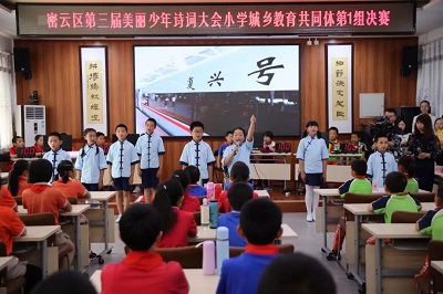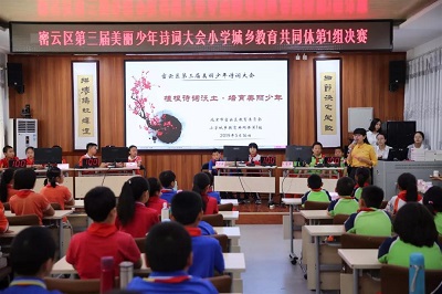 为弘扬中华优秀传统文化,落实立德树人的根本任务,精准推进阅读与表达工程,树立文化自信,5月16日上午,密云区小学城乡教育共同体第1组开展了以“植根诗词沃土·培育美丽少年”为主题的第三届诗词大会决赛。