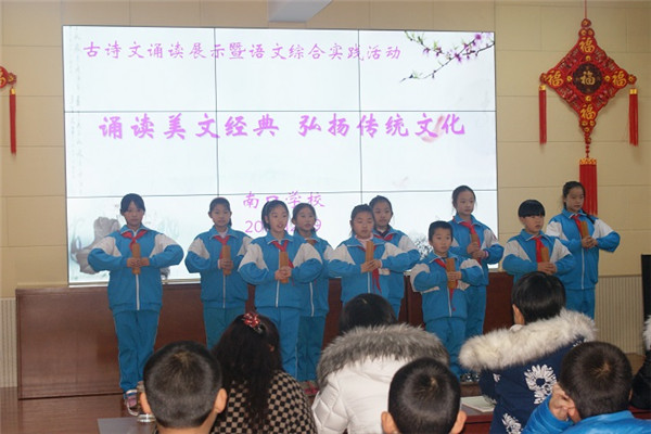 为弘扬祖国传统文化,提高学生综合文化素养,昌平区南口学校中、高年级开展了“诵读美文经典 弘扬传统文化”古诗文诵读展示活动。活动分为“古诗文诵读”和“诗配画”两部分。老师和同学们精心编排,辛苦付出,呈现了丰富多彩的诵读节目和诗配画作品。