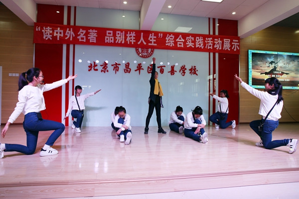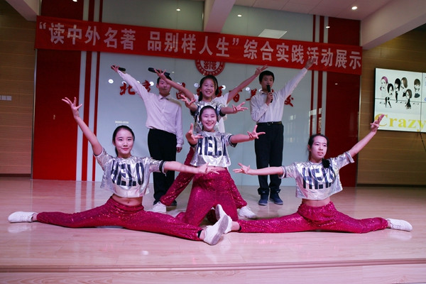 12月23日,昌平区百善学校中学部举行了“读中外名著 品别样人生”综合实践活动。此次活动由语文组和英语组联合组办,把中外名著的精彩片段、经典歌曲呈现于舞台上,呈现的形式多种多样,有戏剧、舞蹈、朗诵、演讲、楹联展示等,给学生创造了一次锻炼自我的机会,搭建了一个展示自我的平台,颇受学生们的喜爱。学校领导和部分学生家长全程观看了展示活动,活动结束后,樊海龙校长对孩子们的表现给予了高度表扬,同时也寄予了殷殷期望,希望孩子们在百善学校能成长为身心健康、知礼明理、会学善思、有自信心和生长力的尚善学子!(庞春雨)