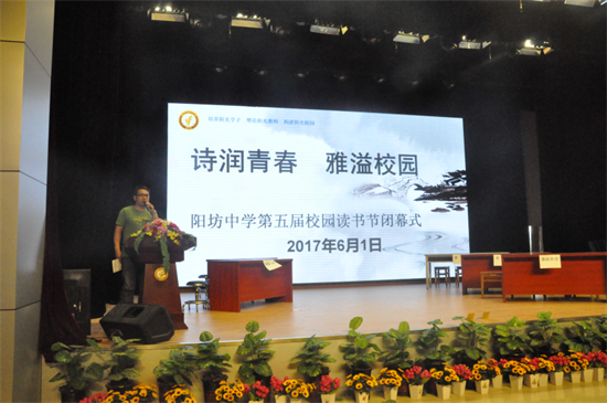 6月1日,昌平区阳坊中学全体师生集聚报告厅隆重举行第五届校园读书节闭幕式。李宝昆副校长为读书节致闭幕词,对为期一个月的“诗润青春?雅溢校园”第五届读书节活动进行总结;各年级进行了诗吟诵展示,学生们声情并茂背诵《秋词》《水调歌头》《浣溪沙》等诗词,整个报告厅诗声琅琅。学生还展示了诗歌创作优秀作品,其中初三原创诗《战中考》更是惟妙惟肖,激发初三学子战胜中考的决心;语文组针对读书节精心设置“校园诗词大赛”环节,最终评出一等奖4名、二等奖8名、三等奖8名。最后由张丙益校长讲话,祝大、小朋友们节日快乐,感谢语文组教师的精心制作、年级间的相互合作、学生的精彩展示,读书节虽然落幕,期望同学们继续在读书中充实自己、寻求快乐!