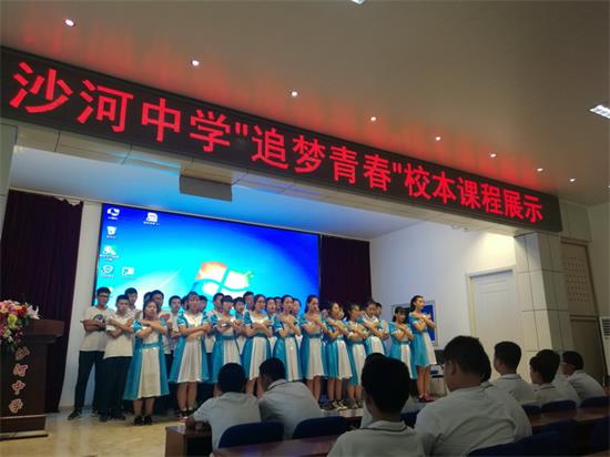 6月29日,昌平区沙河中学开展“追梦青春”校本课程展示活动。学校将课本剧纳入到三级课程建设中来,由语文、英语学科教师承担了指导教师,带领学生了解话剧、编写剧本,排演课本剧。经过两个学期以来,学生从舞台剧的门外汉,到自编自导自演,合作能力、组织能力、表达能力都有很大的进步。此次活动共展示了初一年级的《红岩》《我们的花季》《我一定行》、初二年级的《三国演义*舌战群儒》和英语剧《Giving Tree》《you raise me up?》6个节目。课本剧的开展极大了激发了学生学习语言的兴趣,培养了学生的表达能力和自信心,同时也发掘了教师的潜力,锻炼了教师能力。共90多名师生参加了此次活动。