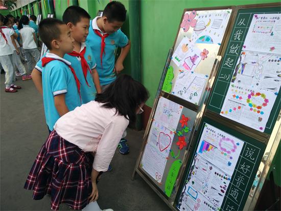 9月11日至17日,昌平区巩华中心小学全体师生开展第二十届全国推广普通话宣传周活动。首先我校领导小组制定了推普周活动方案。其次,结合我校实际情况,大力宣传,广泛动员,开展了国旗下分享、板报宣传、优秀手抄版展览、读书交流、教师学习等一系列丰富多彩的活动,学生在活动中体验,在活动中学习,在活动中明理,并将这种影响力推及社会和家庭,形成教育的合力,取得了良好的效果。