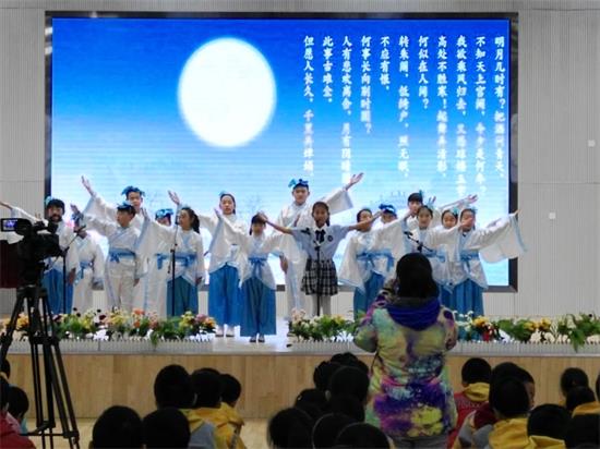 1月5日,昌平区阳坊中心小学参加巩华协作组“传统文化浸润心灵,古诗诵读伴我成长”的古诗词诵读活动。童声合唱《春晓》拉开比赛序曲,接下来是古诗联诵《小池》《静夜思》《望庐山瀑布》《绝句》《赠汪伦》《回乡偶书》,同学们用抑扬顿挫的语调、真挚朴实的情感,声情并茂地阐述了自己对经典古诗词的理解。最后一曲《水调歌头·明月几时有》将节目推向高潮,迎来热烈的掌声。一段段精心挑选的诗词,一句句绘声绘色的诵读,进入学生的日常学习生活中,使学生们感受到经典古诗词带来的美的享受,更让学生们享受了诵读带来的快乐。此次活动由李莎莎、李慧琴两位老师带领17名学生参加。