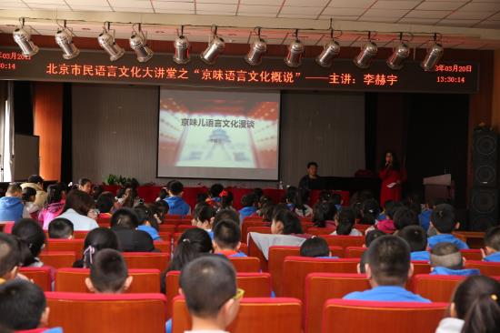 3月20日下午,昌平区巩华中心小学邀请北京语言文化研究员李赫宇做了一场《北京市民语言文化大讲堂之“京味语言文化”》讲座。讲座旨在宣传中华优秀传统文化,培养孩子们对语言文化的民族认同感,激发学生对传统文化尤其是京味语言文化的研究兴趣。李老师从北京城的历史和北京话的历史开始讲解,运用生动具体的例子讲解了北京话的起源,特色。语言诙谐幽默,学生们听得津津有味。通过这次讲座,同学们受益匪浅,不仅对北京语言有了大概的了解,而且在了解京味语言文化的独特魅力中增强民族精神,激发民族自豪感,传承中华精气神韵。五年级200余名师生参加了本次活动。