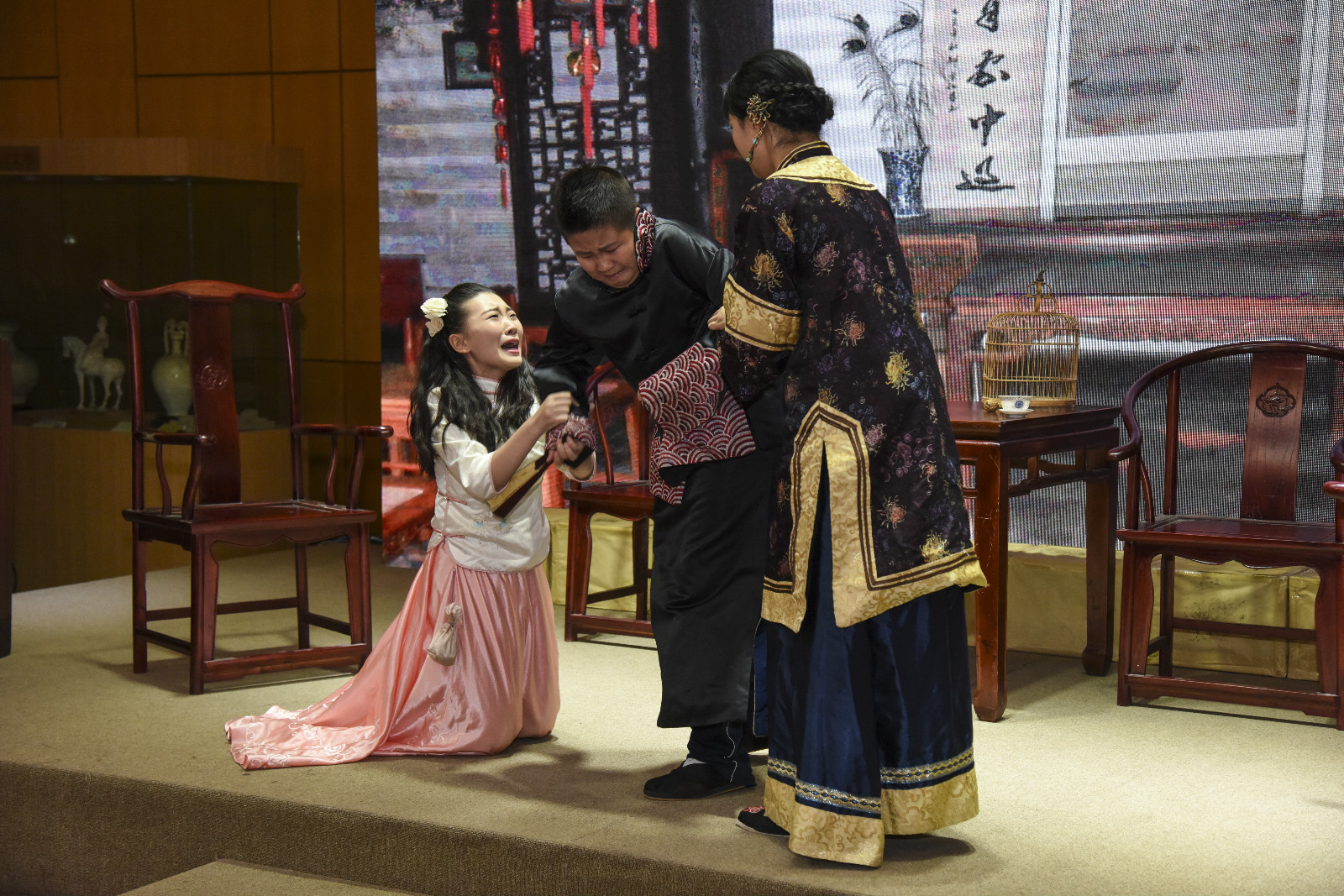 分会场在展示朝阳区“亲子诵读大赛”、“校园新媒体主持人大赛”等各类区级比赛的基础上,重点展示了麦子店街道社区教育实体学校、阳光课堂、老年大学、社区活动中开展的各项语言文化活动。舞台上,配乐朗诵《长征》、话剧《六月山栀雪》讲述了新时代学生的爱国情怀,英文诗朗诵《当你老了》则是国际化区域老年人老有所学、老有所为的集中体现,精彩的节目赢得满堂喝彩。演出结束后,二层展厅的木版水印、毛笔制作、软木篆刻、快板表演、京剧体验等实践活动,引来参会领导、观众的纷纷驻足,受到社区居民的一致喜爱。
