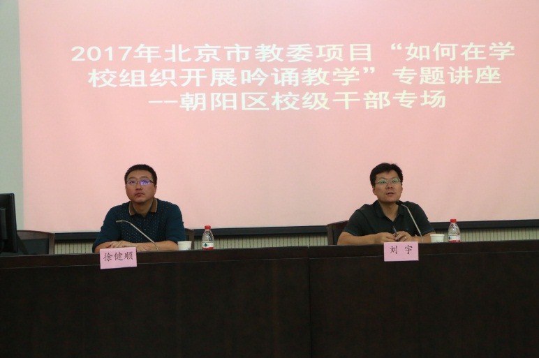 为深入贯彻落实中共中央办公厅、国务院办公厅《关于实施中华优秀传统文化传承发展工程的意见》的精神,帮助教师提高古诗文教学能力,2017年9月22日,朝阳区语委办依托首都师范大学中国国学教育学院,开办了“如何在学校组织开展吟诵教学”的校长培训班。朝阳区中小学100余名校级干部参加。