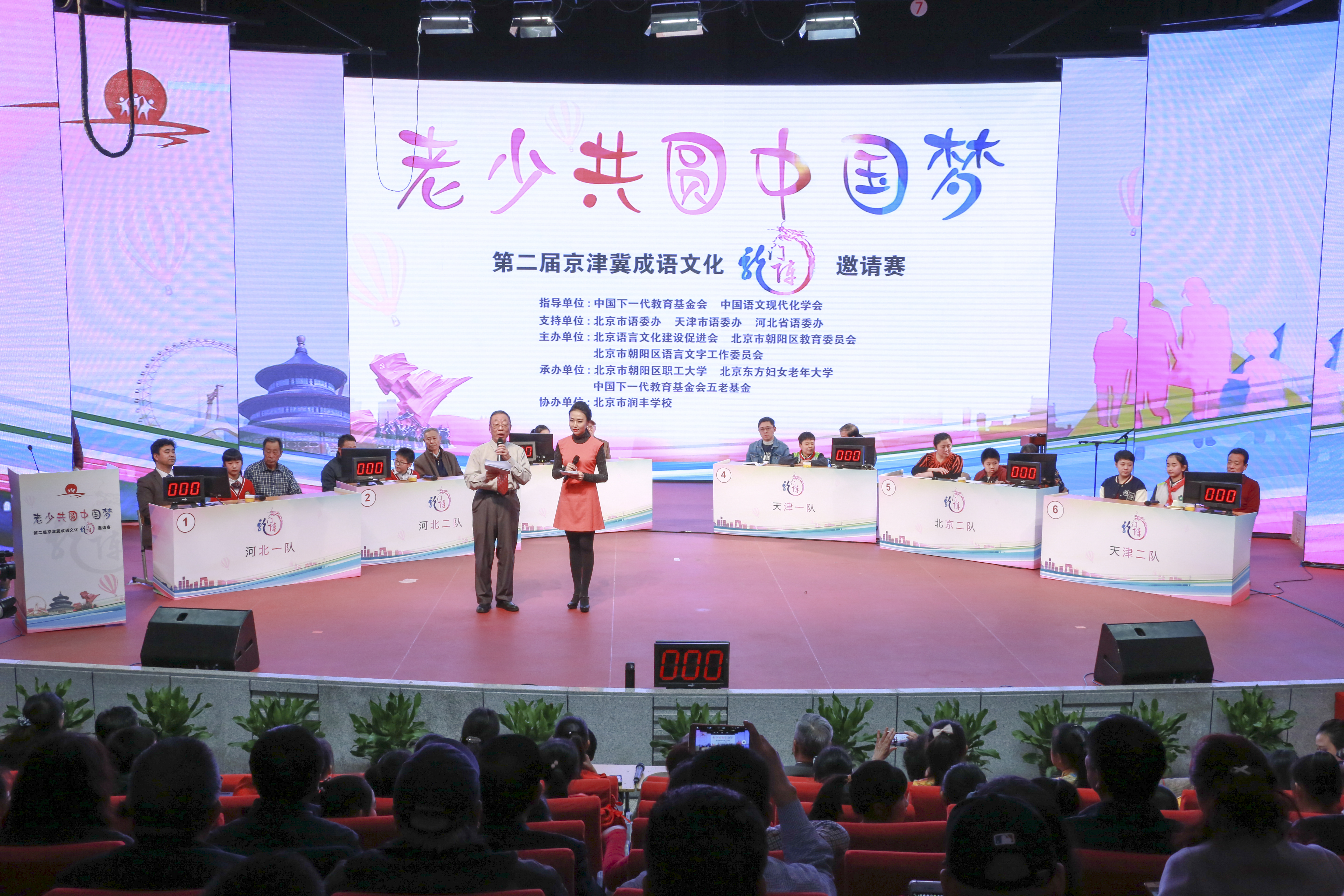 2017年11月18日, 老少共圆中国梦——2017年京津冀成语文化龙门阵邀请赛在北京市润丰学校举行。活动由北京语言文化建设促进会、朝阳区教育委员会、朝阳区语言文字工作委员会主办,中国下一代教育基金会、中国语文现代化学会、北京市语委、天津市语委、河北省语委给予了大力支持与指导。第十届全国人大常委会副委员长、中国关心下一代工作委员会主任顾秀莲,中国关心下一代工作委员会副秘书长朱萍,北京市朝阳区常委副区长孙其军、朝阳区教委主任肖汶等领导出席。中国语文现代化学会会长靳光瑾、中国语文报刊协会会长王晨等参会。中国语文现代化学会原副会长袁钟瑞和语言文字应用研究所李桃博士主持。京津冀语文教育联盟主席、天津师范大学教授谭汝为,中国语文现代化学会成语文化研究会理事长,首都师范大学教授杨学军,河北大学国际交流与教育学院院长郭伏良教授担任评委。朝阳区教委、天津河北区教育局、河北省秦皇岛市教育局领导,朝阳区委办局相关领导以及全区各小学语言文字工作负责人、东方妇女老年大学学员、社区居民、学生300余人参加了活动。