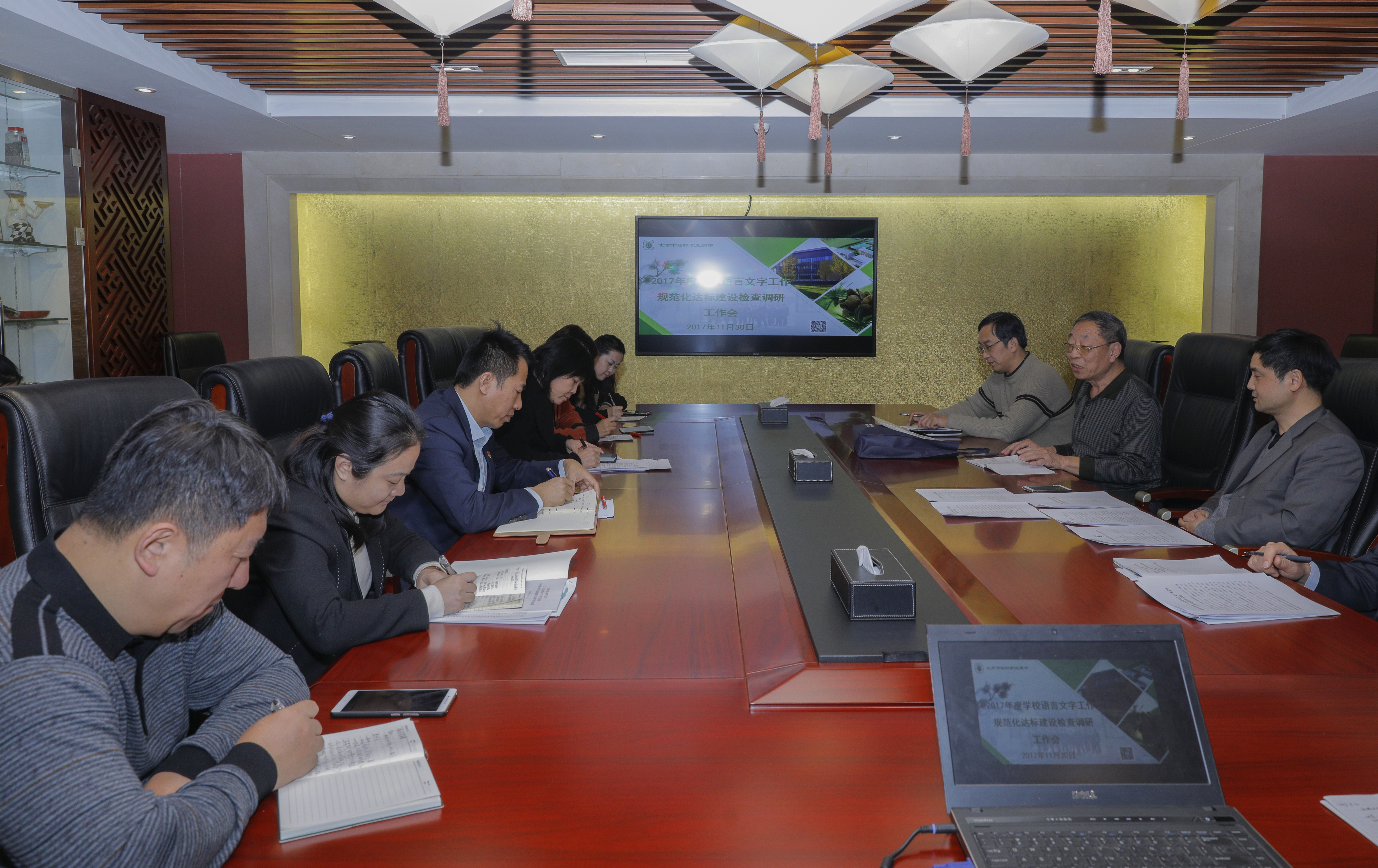 区语委办主任刘宇就2017年度朝阳区开展学校语言文字规范化达标建设工作情况进行了汇报,三所学校(园)分别做了语言文字规范化达标建设工作总结。调研工作组在查阅学校语言文字工作档案资料后走进教室听了劲松职高语文课和书法课,实地检查了校园语言文化环境,并饶有兴致的参观了劲松职高的养老专业实训教室。