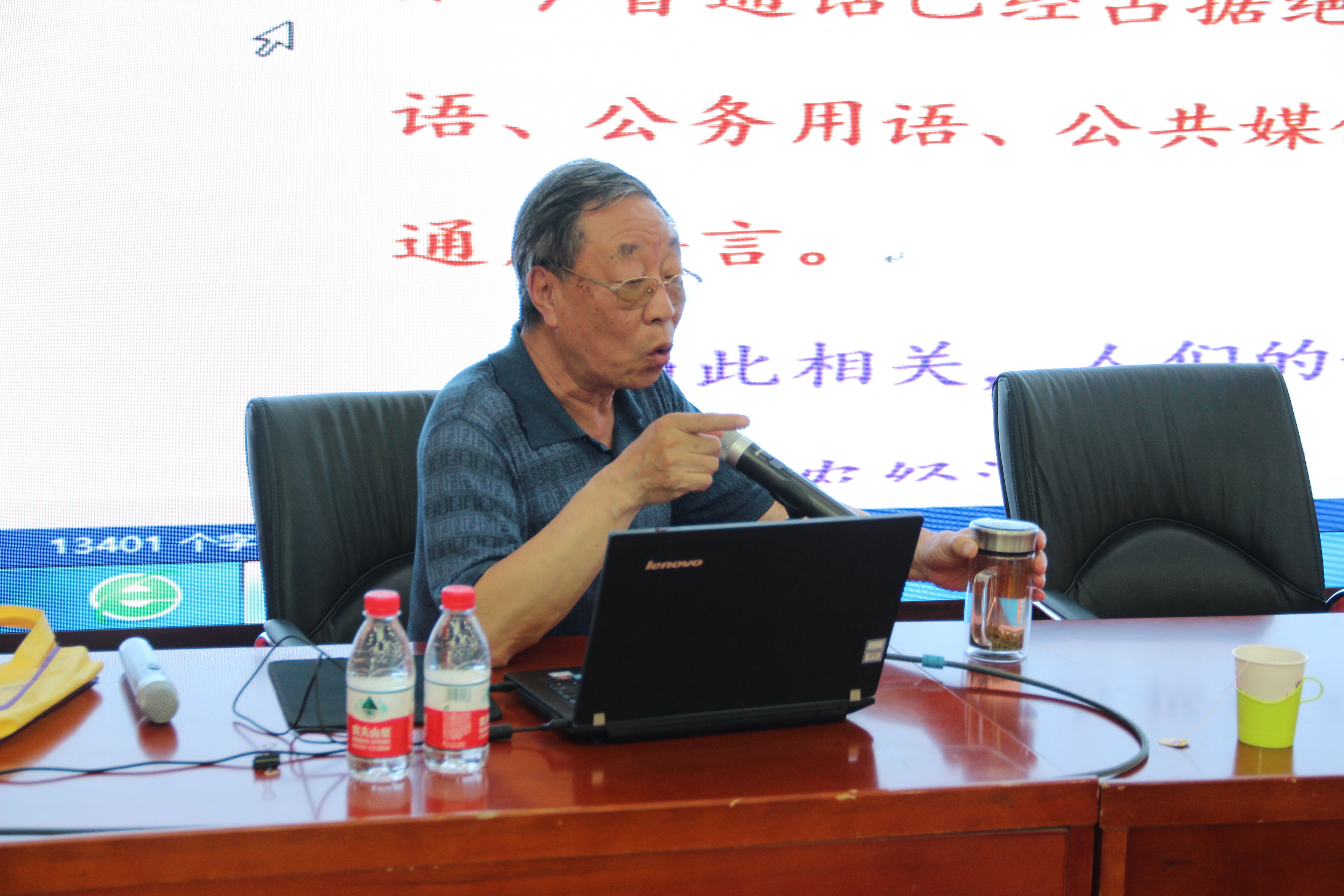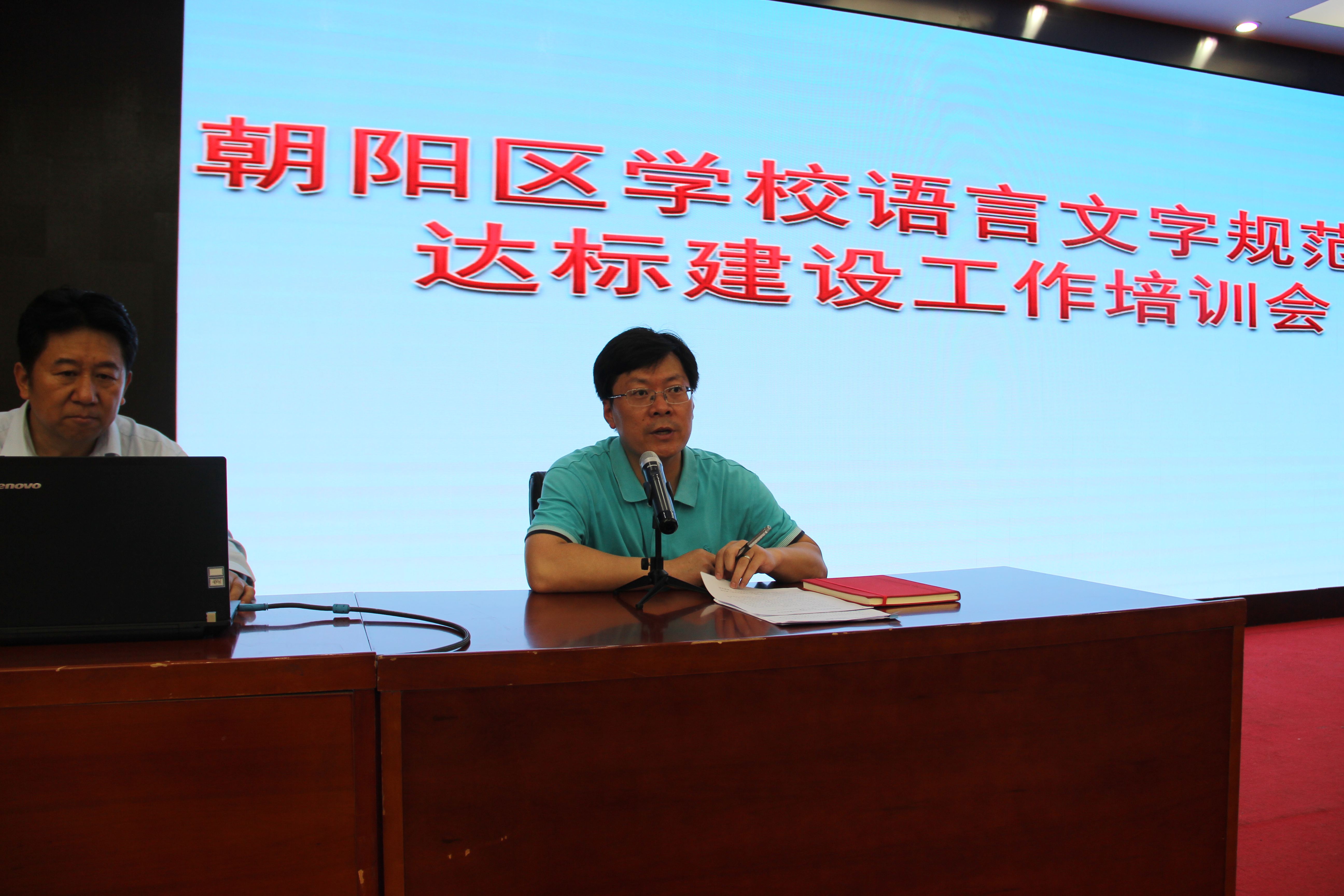 社区科科长刘宇首先介绍了此次培训的目的,要求今年迎接市教委、市语委语言文字规范化达标建设工作评估的82所小学要认真按照区教委的工作部署,结合学校语言文字工作指导标准做好规范化达标建设工作。在语委办解读达标建设工作实施方案后,教育部原普通话推广处处长、北京市语言文字测试中心首席专家袁钟瑞在讲座中深入浅出地讲述了语文现代化的必要性,并用生动的案例介绍了我国语文现代化的推进历程以及伟大成就。就此次我区学校语言文字规范化达标建设工作,袁老师强调了培养目标、组织机构、规章制度、师资培训、语文教学、实践活动、环境建设、档案资料等八个工作要点。